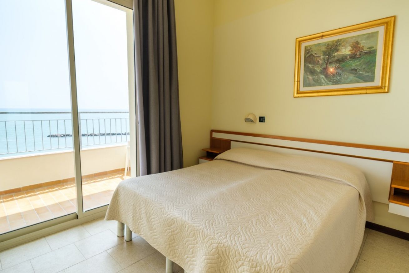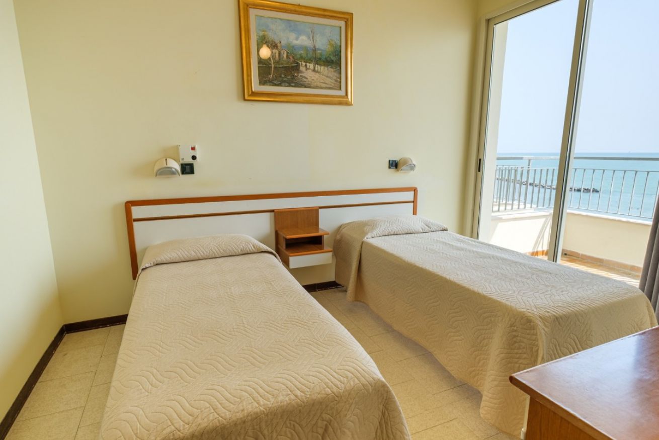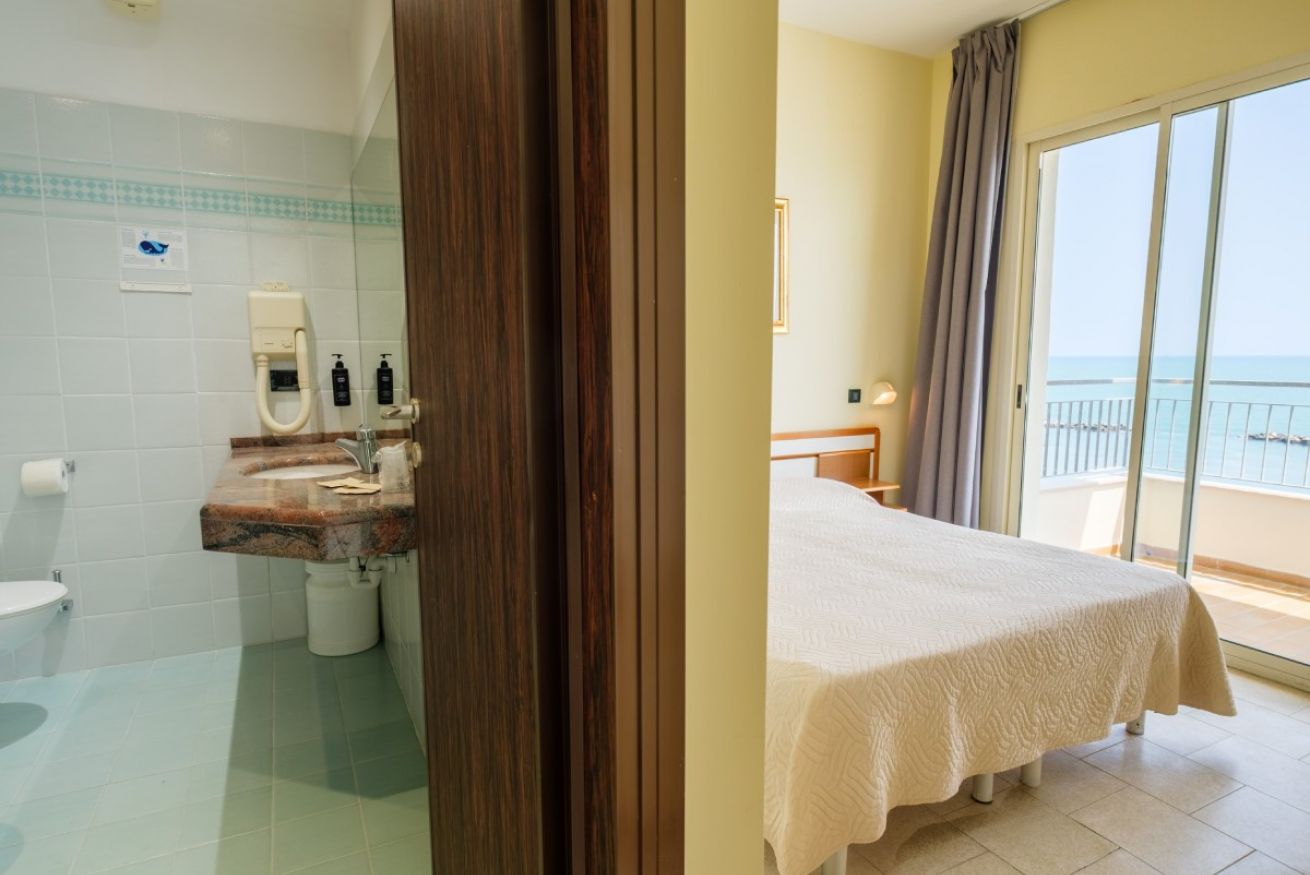 Family room (camere comunicanti dotate di un solo bagno e due balconi).Le camere, accoglienti e spaziose, sono tutte dotate di bagno con box doccia in cristallo, aria condizionata, asciugacapelli, telefono, wi-fi, cassaforte, TV, frigobar e balcone fronte mare.