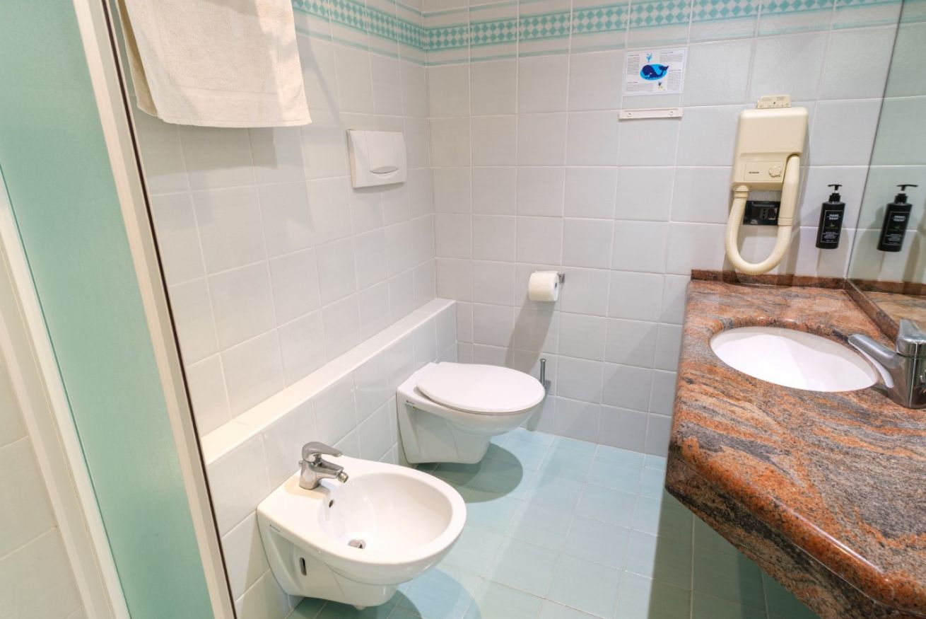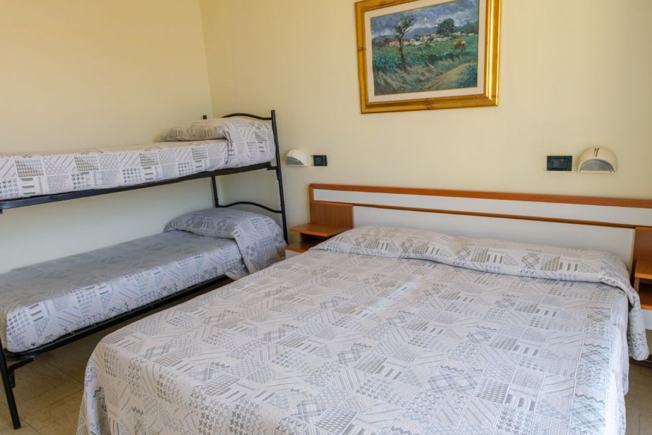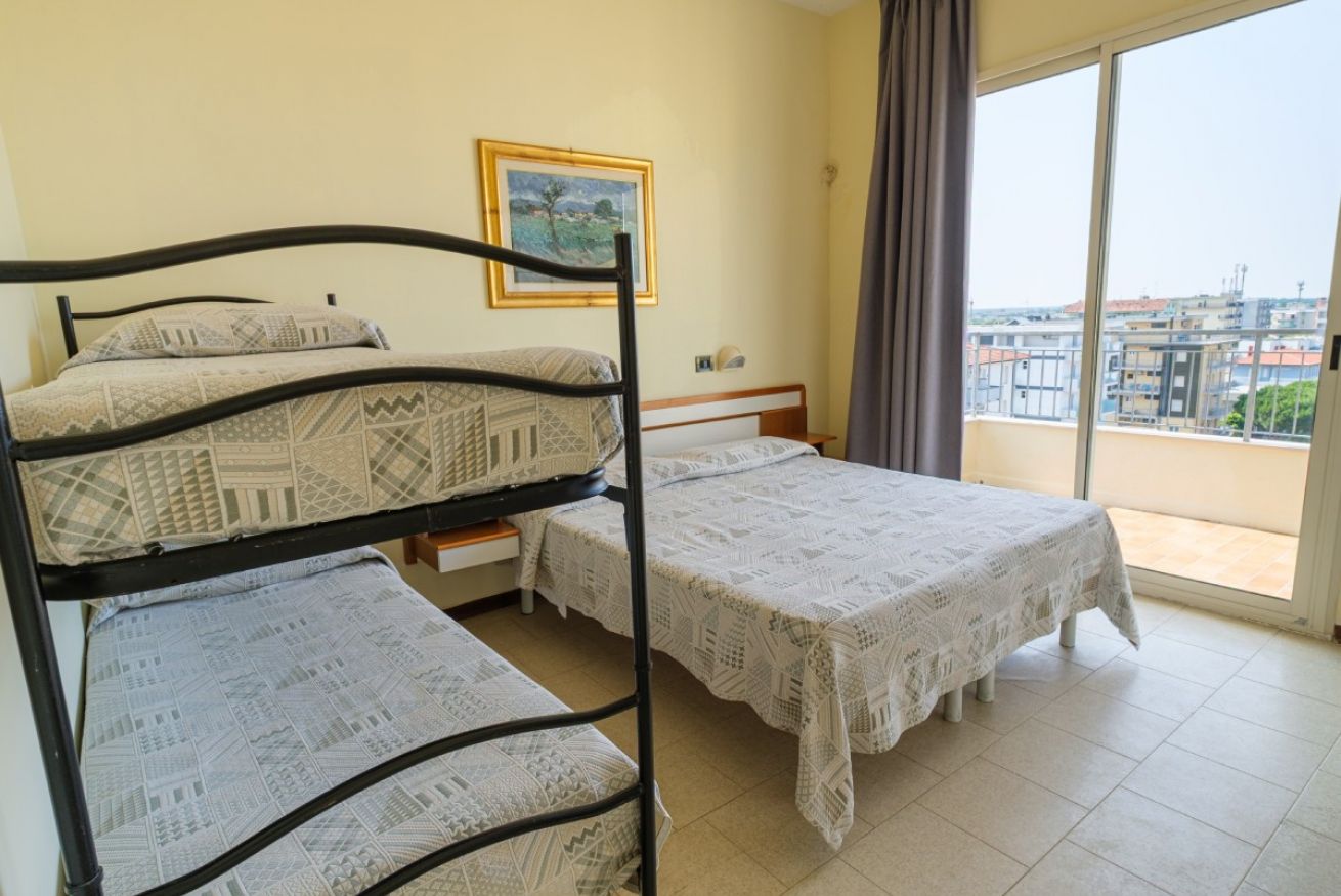Family room (camere comunicanti dotate di un solo bagno e due balconi).Le camere, accoglienti e spaziose, sono tutte dotate di bagno con box doccia in cristallo, aria condizionata, asciugacapelli, telefono, wi-fi, cassaforte, TV, frigobar e balcone fronte mare.