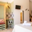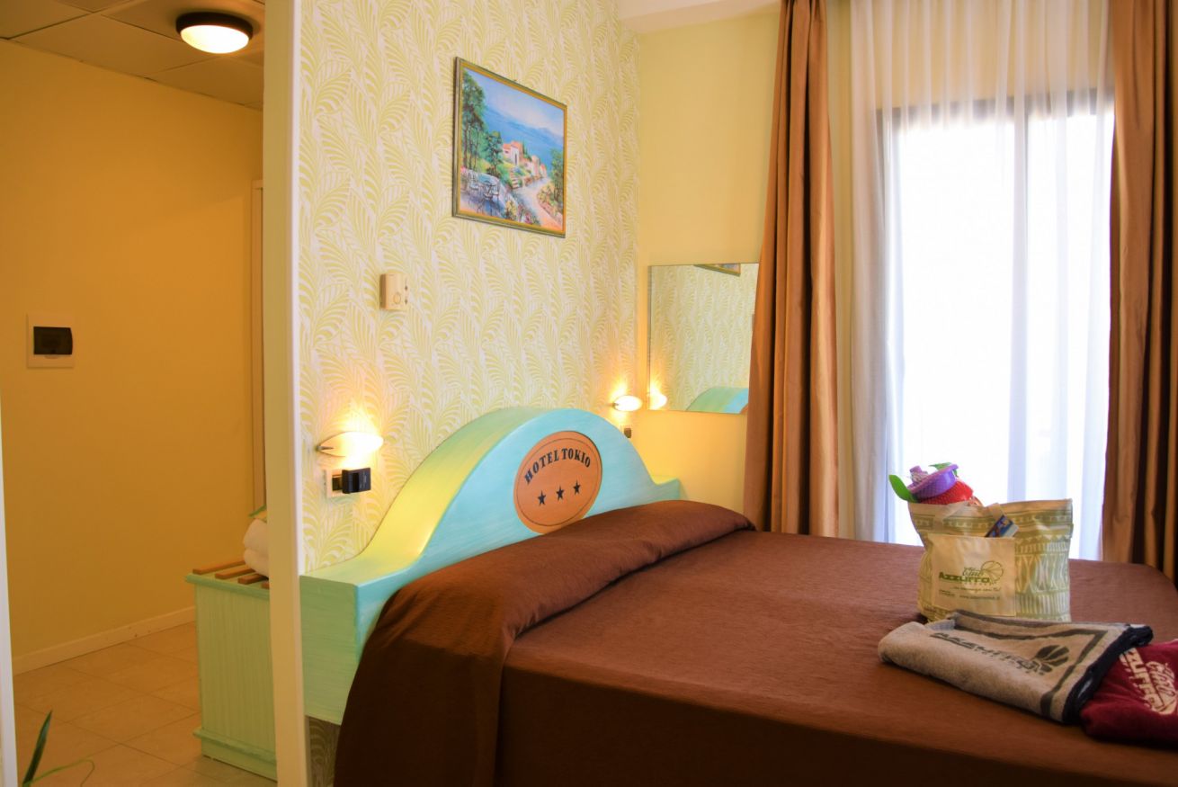 Due camere comunicanti con un bagno in comune. Le camere sono con balcone, servizi con doccia con tenda, asciugacapelli, telefono, cassaforte, TV, aria condizionata, wi-fi.