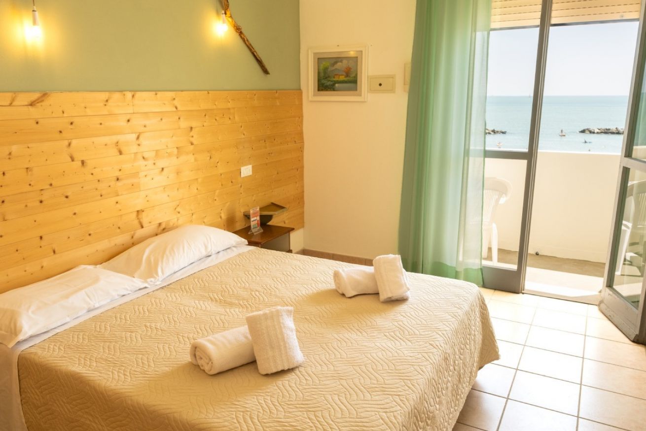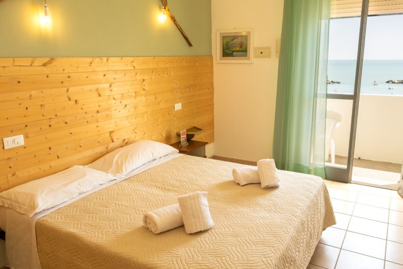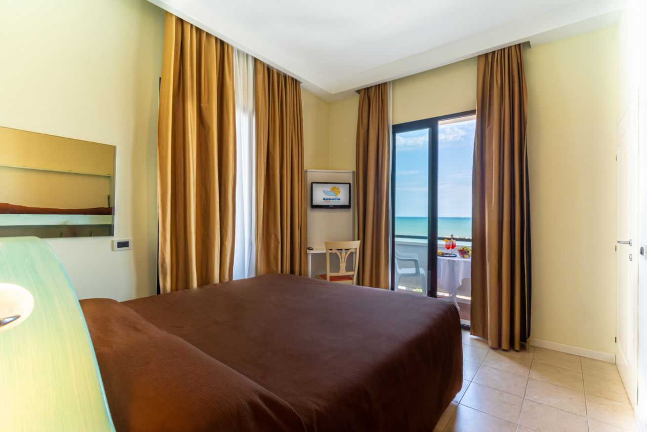 Le camere Exclusive sono modernamente ed elegantemente arredate. Sono dotate di: balcone fronte mare, servizi privati con box doccia ed asciugacapelli, letti ortopedici di qualità eccellente, TV led lcd, connessione internet gratuita, cassaforte, aria condizionata, frigobar, asse e ferro da stiro, scarpiera, accappatoio.Ombrellone e lettini in spiaggia in prima e seconda fila.