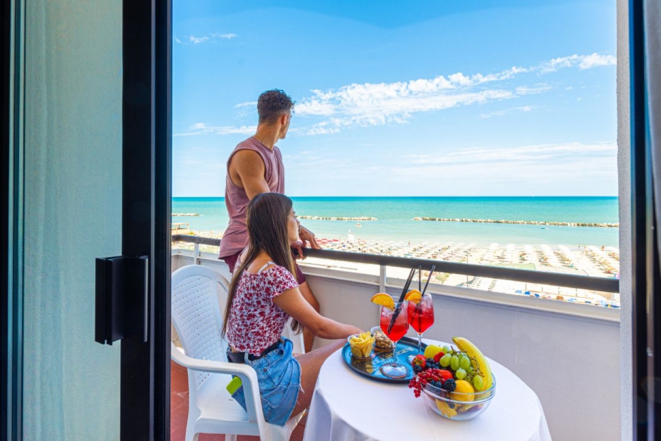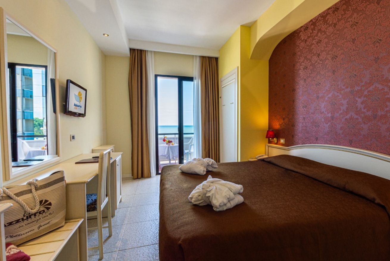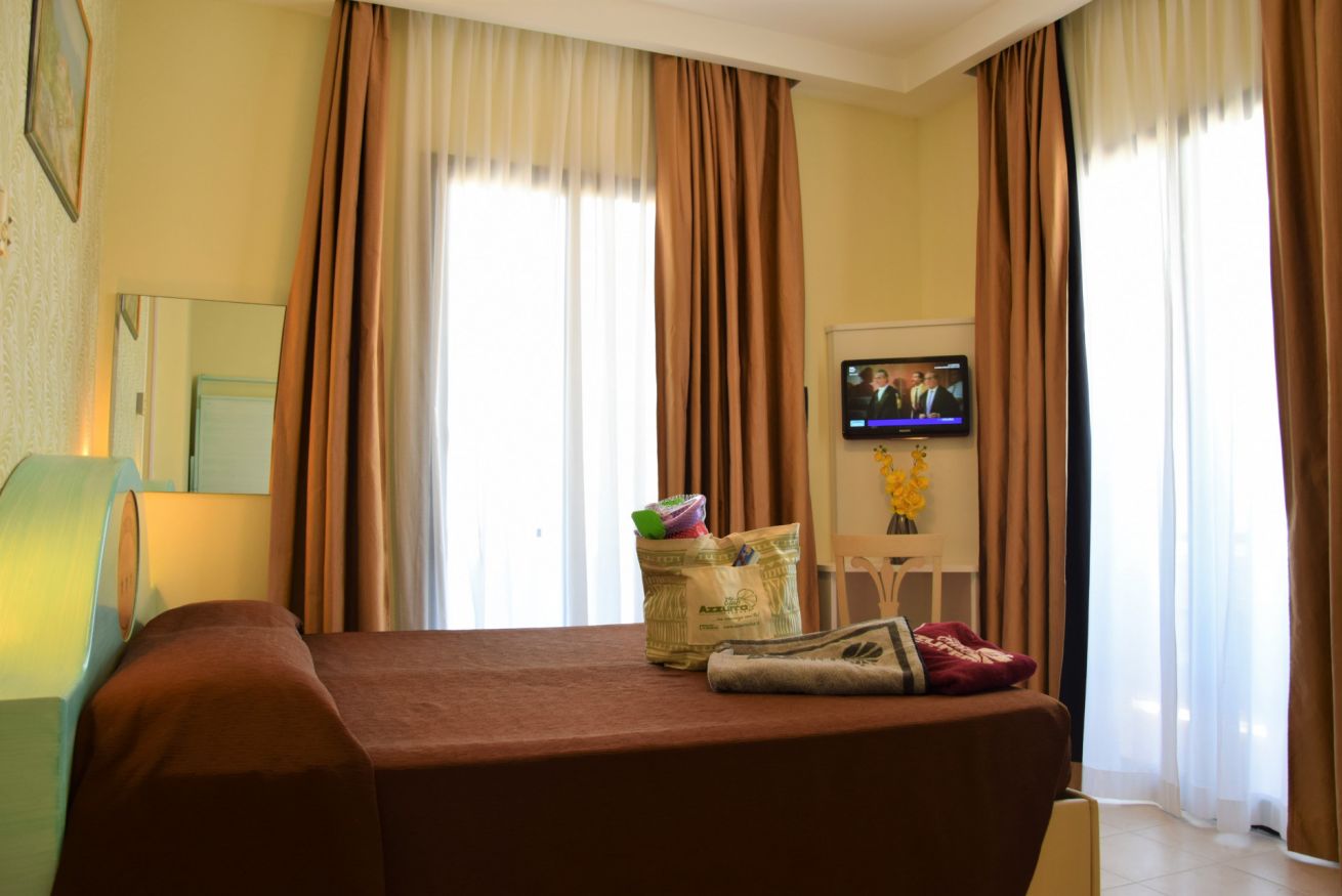 Le camere Exclusive sono modernamente ed elegantemente arredate. Sono dotate di: balcone fronte mare, servizi privati con box doccia ed asciugacapelli, letti ortopedici di qualità eccellente, TV led lcd, connessione internet gratuita, cassaforte, aria condizionata, frigobar, asse e ferro da stiro, scarpiera, accappatoio.Ombrellone e lettini in spiaggia in prima e seconda fila.